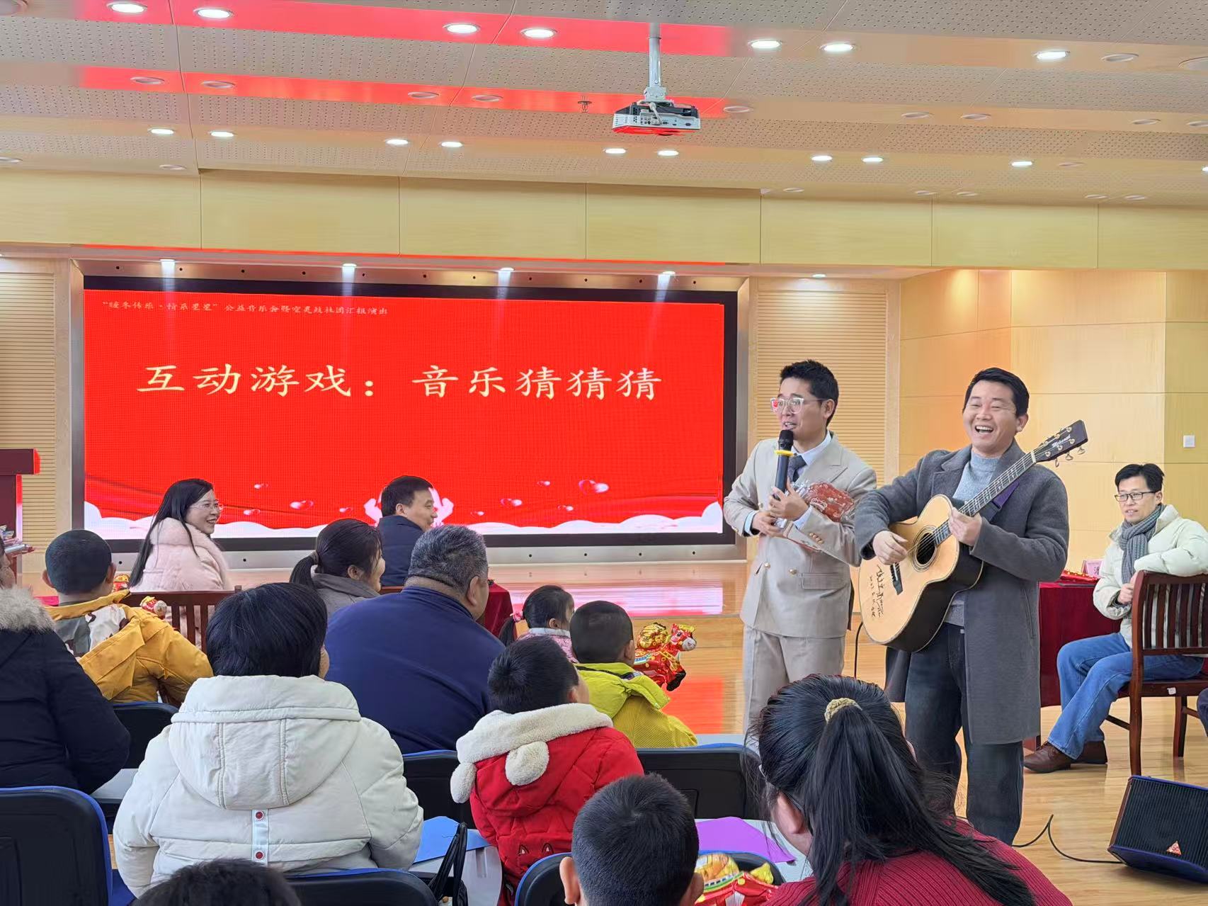 音乐会表演环节精彩纷呈,口风琴独奏、空灵鼓独奏、竹笛独奏、吉他弹唱等节目轮番上演。《乃呦乃》《小星星》《粉刷匠》等耳熟能详的曲目,经我院特殊儿童的演绎更显童真烂漫;教师们带来的吉他弹唱《大王叫我来巡山》、组合演唱《如愿》等节目,赢得现场阵阵掌声。互动游戏“音乐猜猜猜”进一步拉近了彼此距离,欢声笑语不断。整场演出在全体共同合唱《新年好》的喜庆旋律中推向高潮。