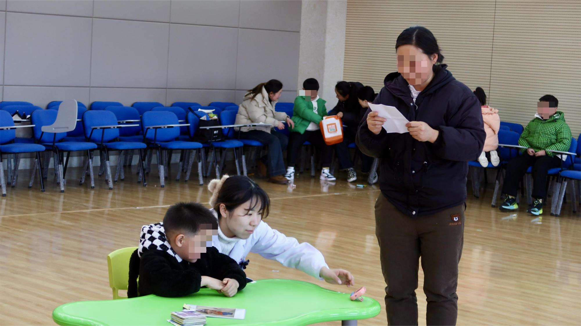 本次大赛以“以赛促学强技能,家院同心助康复”为主题,设置笔试(占比30%)和实操(占比70%)两个环节,笔试已于前期完成,当日重点开展实操比拼。实操环节聚焦儿童认知、语言、社交等高频实用项目,参赛家长按抽签顺序依次登场,自带孩子完成家庭康复技能展示,评审小组现场打分、提问并点评。