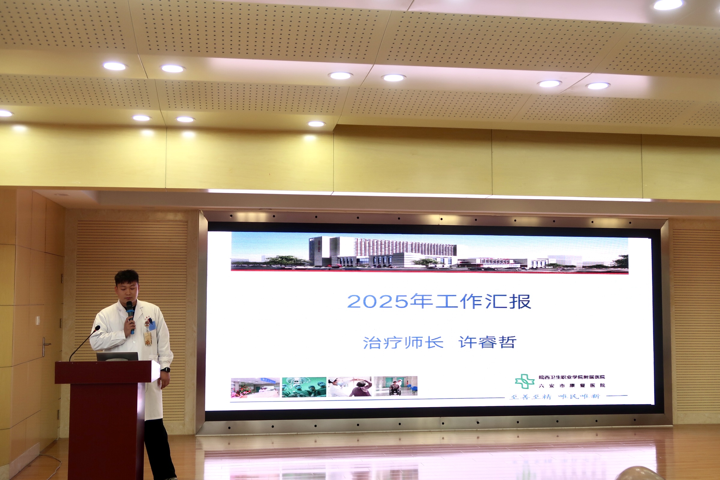 报告会上,儿童康复科治疗师长、特教主管、各治疗组组长等7人依次汇报,围绕2025年度工作完成情况、特色服务成果、存在问题进行全面总结,并结合专业发展方向,明确2026年工作目标与举措。与会领导认真听取汇报,对各团队2025年度工作成效及取得的成绩给予充分肯定,对提升康复诊疗质量、强化人才梯队建设、优化特教服务模式等方面提出具体指导意见,重点强调进一步加强医疗质量安全,积极开展新技术项目,加强人文关怀,提升康复能力等。