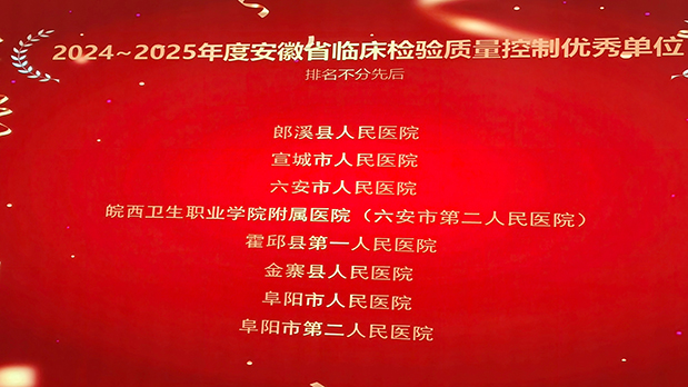 12月6日,2024–2025年度安徽省临床检验质量控制评选结果揭晓,由我院医学检验科牵头的六安市临床检验质控中心,获评“优秀市级质控中心”,医学检验科同步获评“临床检验质量控制优秀单位”。这两项省级殊荣彰显了科室在区域检验质控工作中的引领作用,也是对科室日常检验工作规范化、精准化管理的高度认可。