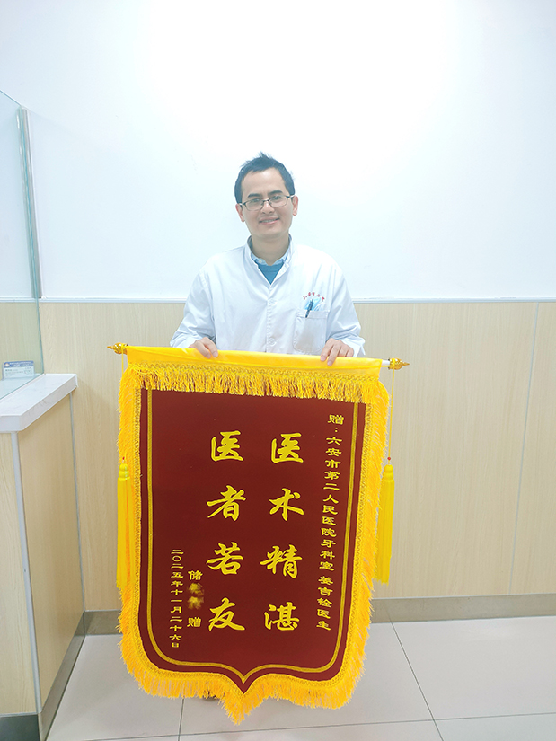 11月中旬,口腔科姜吉铨主治医师收到了一份特殊的礼物——家住金寨的患者储先生专程送来的一面印有“医术精湛 医者若友”的锦旗。这面锦旗,不仅是对姜医生专业医术的肯定,更承载着一段跨越数年的医患深情。
