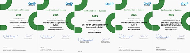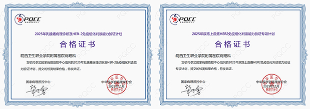近日,皖西卫生职业学院附属医院(六安市第二人民医院)病理科在2025年度国家级、省级多项质控项目中取得优异成绩,高标准通过免疫组化室间质控GATA3、PAX-8、TTF-1、呼吸及泌尿系统病理诊断能力验证、乳腺癌病理诊断及HER-2免疫组化判读能力验证、尿路上皮癌HER-2免疫组化判读能力验证等7个项目。同时,科室骨干王瑾医师在进修期间通过国际权威PD-L1质控项目认证,充分彰显了病理科在病理检测和诊断方面的精准性和规范性。