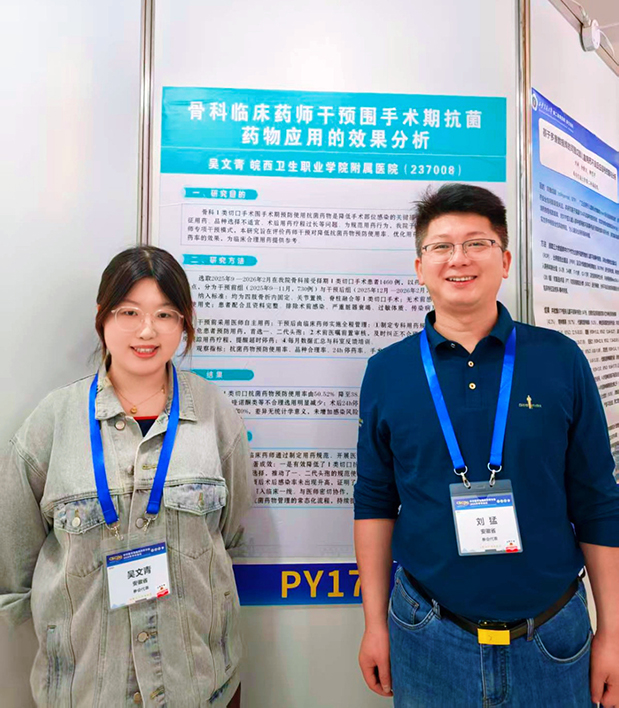 本次会议面向全国征集学术论文6086篇,经各分会组织专家开展两轮严格的“双盲”评审,我院临床药学部刘猛、严家菊、方可、吴文青的4篇投稿论文全部入选,均获书面交流资格。其中,吴文青药师的研究论文《骨科临床药师干预围手术期抗菌药物应用的效果分析》(Py-177)获得壁报交流资格,并在会议期间进行专题展示。我院的学术成果再次获得国家级学术盛会的认可。此论文也是六安地区唯一入选。