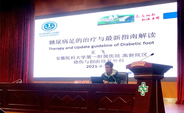 当天下午,在皖西卫生职业学院附属医院行政楼四楼会议室举行了丰富多彩的学术交流活动。安徽医科大学第一附属医院高新院区副院长陈旭林、烧伤与创面修复外科副主任王飞、护士长鲁义玉分别就《头部创面和压疮的外科处理》《糖尿病足的治疗与最新指南解读》《皮瓣转移术后护理》等课题进行了深入浅出地讲解。与会人员纷纷表示,学术活动内容丰富、精彩纷呈,受益良多。