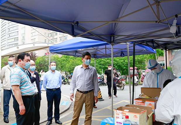 5月18日下午,省卫生健康委综合监督所党委书记、所长冯书礼一行,在皖西卫生职业学院副院长方士英,学院副院长、附院党委书记姜风,六安市公立医院管理委员会办公室专职副主任、六安市卫生健康执法支队副支队长秦富好,附院党委副书记、院长金平等陪同下对我院疫情防控工作进行督导。