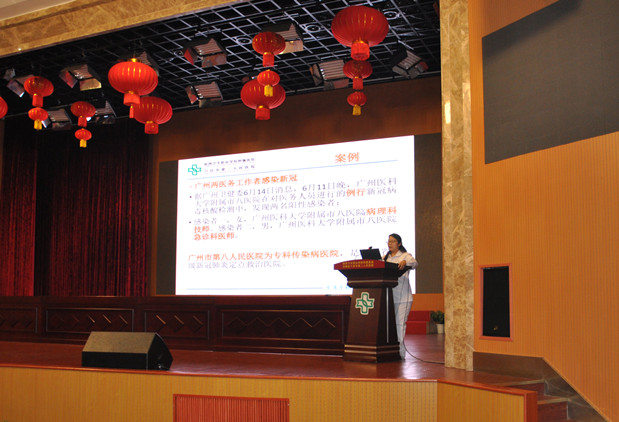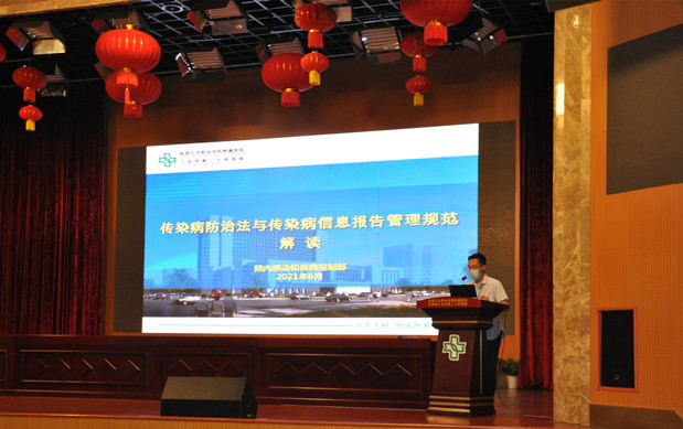 接着,院内感染和疾病控制部副主任张蔚就传染病防治法与传染病信息报告管理规范进行解读,普及了传染病防治法相关知识,并对我院传染病上报等流程做进一步说明。