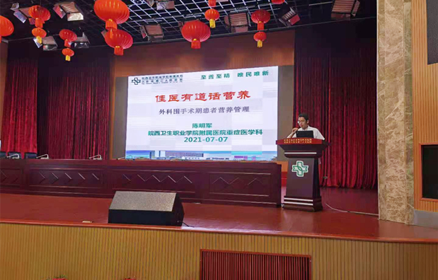 2021年7月7日,我院质量管理部联合营养膳食科在行政楼四楼会议室举办“围手术期营养管理”知识培训会议。会议由副院长高长根主持,临床医护人员300余人参训。
