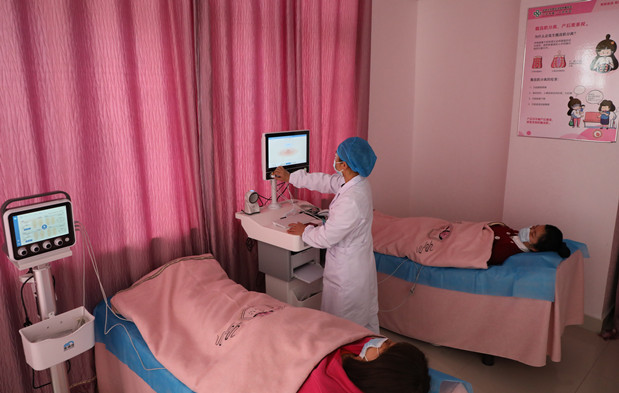 记者在中心看到,粉红色的布局色调让治疗环境温馨而恬静。“病人来到科室后,我们首先会对她们进行盆底肌评估,再根据个人的实际情况制定盆底康复治疗方案,正常一个疗程15次盆底修复后,病人症状能发生明显好转。”中心主管护师马艳一直在妇产科工作,产后盆底康复中心成立后,她成为这里的业务骨干。每天,她接触到不同症状的女性病人,为她们的盆底肌进行评估,再制定治疗方案,进行分时段治疗。“每当看到病人经过治疗取得明显的效果,特有成就感!”马艳告诉记者,产后3-6个月是盆底肌恢复的黄金时机,一些产妇因为没有相关方面的常识错失了这个时间段。