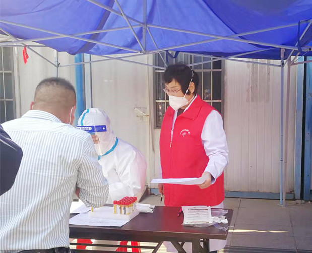 自4月6日起,共28名志愿者每天派出2名轮流值班,在我院核酸检测点开展志愿服务,同志们身穿红马甲,引导参检人员进行核酸检测预登记、展码;提醒规范佩戴口罩;督导一米线间距;辅助医护人员核对参检人员信息,助力核酸采样工作提速。