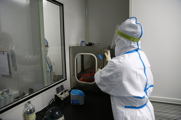 他们不分昼夜坚守在灯火通明的实验室,裹着厚厚憋闷的防护装备,忍耐着每分每秒对体力耐力的巨大消耗,口干舌燥、衣衫湿透,出来时身体摇摇欲坠……一放松下来,就身不由己地瘫坐甚至躺倒在地上,可是这群由党员和普通群众组成的战“疫”突击队,从没有人叫苦喊累,都主动请缨,一直坚持在工作岗位上!