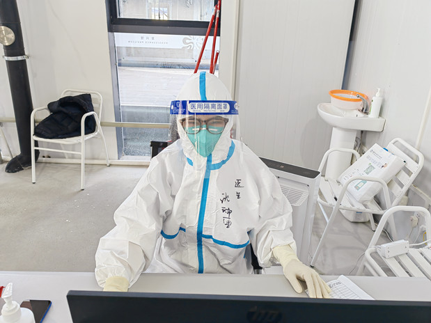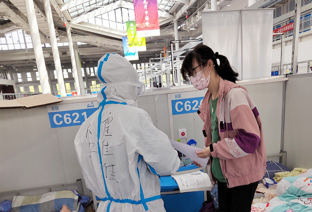 医疗队队长史晓娟是一名优秀共产党员。开舱前,负责舱内物资、区域的划分,她用那瘦弱的身躯、坚强的毅力、超凡的责任心、克服一切困难,为顺利开舱保驾护航。随后,又积极加入到方舱工作中,为患者采集核酸、解决工作常见问题。日常生活中,她每天都会问一句“今天身体怎么样?有什么需要帮助的尽管说”,用实际行动展现出一位共产党员勇于当先、敢于当先的模范作用。