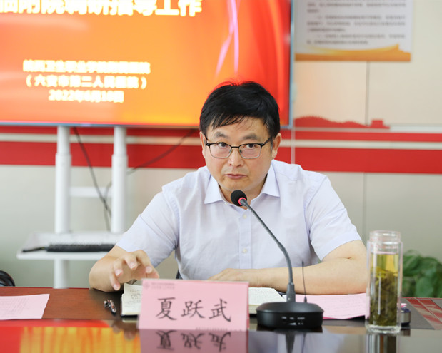 6月10日上午,皖西卫生职业学院党委书记汪斌,院长夏跃武一行莅临附属医院调研指导并召开座谈会。学院党委副书记、副院长韦加庆,学院党委委员、副院长、附院党委书记姜风,学院党委委员、附院院长金平,学院党委委员、办公室主任汪少炜,学院宣传统战处副处长方燕及医院党政领导班子、行政职能科室负责人陪同。