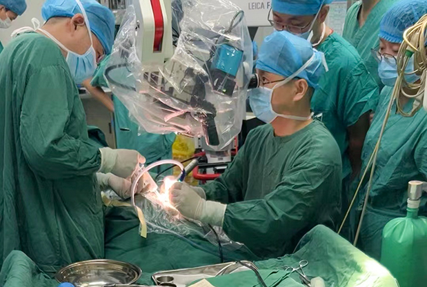 经过缜密的安排和详细的部署,排除禁忌症,手术如期进行。耳鼻咽喉头颈外科副主任医师周宜存主刀,于全麻下行人工耳蜗植入术。术中,他和团队娴熟的进行着精细的操作:测量、做切口、开放乳突腔、磨出安放植入体骨床,开放面隐窝、刺破圆窗、植入体安放骨床内、电极植入骨阶、测试术中植入体阻抗……每一个步骤都精准到位。在与手术室、麻醉科的共同努力下,历时1小时,植入体被安全且准确地植入到了张广润丈夫的耳蜗内。