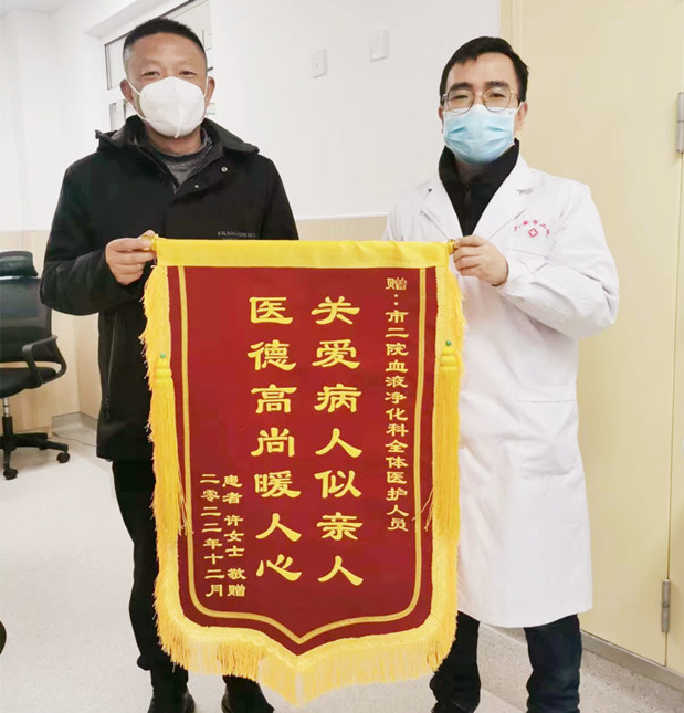 “感谢市二院血液净化中心所有的医护人员,如果不是你们,我当时都不知道该怎么办了,感谢你们提供了家人般贴心的服务!”许女士说。