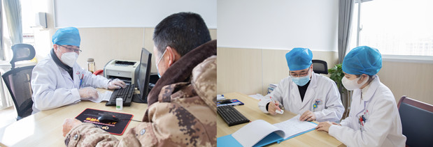 来到内分泌科,编者看到在患者床边问诊、与家属沟通的李东风手指上缠着绷带,办公桌上放满了患者的病历,电脑上也时刻显示着患者的病情,当问到他的手部恢复情况时,李东风说道:“没有什么大问题了,这点伤不妨碍正常工作。现在科室患者多,救治工作压力大,同事们感染后身体还没恢复,都在加班加点。”