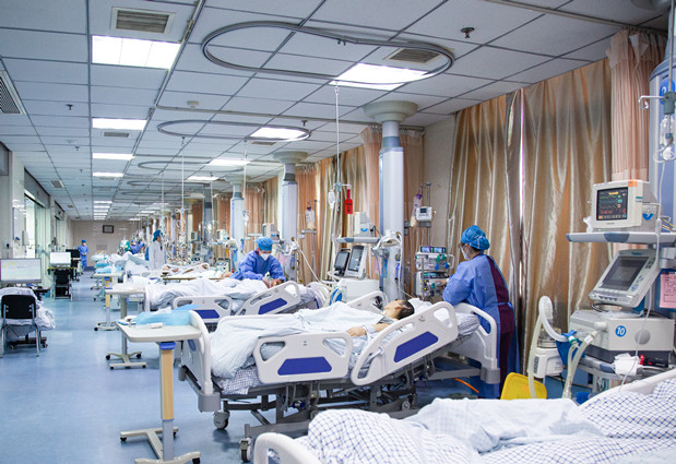 然而,科室很多医护人员也相继感染新冠,为临床工作带来巨大的挑战。他们顶住压力,克服重重困难,竭尽全力保障重症患者的救治,为了缓解就医难现象,在原有床位的基础上,重症医学科再新开15张床位,现在已收治40余名重症患者,成功开展气管插管、机械通气的病人更是达到了20多位。科主任陈明军感染新冠发热后,吃片退烧药就继续组织抢救病患,主治医生闻雪松,自己感染新冠后,强忍着高烧和咳嗽,将家里的孩子托付给父母,驻守医院,常常工作到凌晨,副主任王劲松,值班时先后抢救了十余名重症新冠患者。护理团队团结协作,特殊时期一人承担起多人职责,没有一个人叫苦叫累……