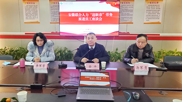 2023年1月14日,值此小年之际,皖西卫生职业学院附属医院(市二院)联合安徽人力资源市场服务有限公司在行政楼会议室召开“迎新春”劳务派遣制员工座谈会,院党委书记金平出席座谈会并讲话,劳务派遣公司总经理汤军勇和院人力资源部同志参加座谈会,会议由院党委委员、副院长李军芳主持。