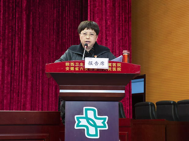 市卫健委党组书记、主任李育新同志充分肯定了我院在创新改革、建设发展等方面取得的优异成绩,高度赞誉了全院医务工作者在新冠病毒感染防控和病人救治工作中做出的辛劳付出和巨大贡献。他表示,市卫健委将继续重视和大力支持医院发展,不断加大政策和资源要素倾斜力度,全力推动医院高质量发展。他希望,医院全体党员干部职工要以更雄浑的魄力、更坚定的决心、更宽广的视野、更务实的举措,不断开创医院改革发展的新局面,为全市人民健康、为奋力开创现代化幸福六安建设新局面作出更多更大的贡献。