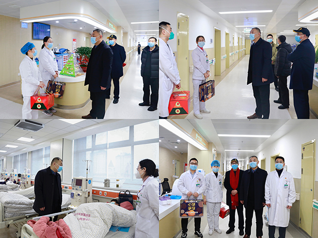 前行不忘耕耘者,岁寒送暖情谊深。大年初一上午,学院副院长、附院党委书记金平,党委副书记、院长赵本泉分别带领院领导班子成员及相关部门负责人,先后到新门诊内科楼、外科楼、市精神卫生中心、市康复医院,看望慰问春节期间仍奋战在工作岗位上的医务人员和在院患者,向他们致以诚挚问候和新春祝福,切实将温暖和关怀送到患者和职工的心坎上。