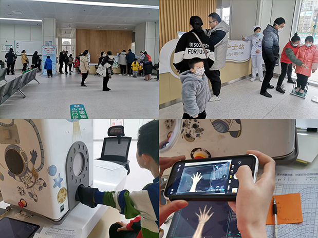 此次的骨龄测量采用的是一款专为儿童设计的全自动智能骨龄仪,除辐射剂量超低外,基于人工智能算法模型实现从拍片、阅片到报告一站式解决方案,全程仅需10秒钟,以安全、便捷、精确、智能的方式评估骨龄,让测骨龄和量血压一样简单。