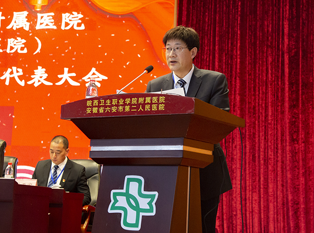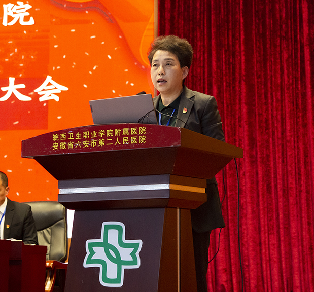 学院副院长方士英在讲话中向大会的成功召开表示热烈祝贺,充分肯定了附院过去一年所取得成绩。他要求附院全体职工要坚持以习近平新时代中国特色社会主义思想为指导,坚持业务发展为第一要务,做到立足本职,开拓创新,主动作为,谋求发展,提升技术水平、提高医疗质量,提升服务品质,改善就医体验,开创附院高质量发展的新篇章,为奋力开创新阶段现代化幸福六安建设作出更大的贡献。