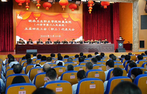 3月10日,皖西卫生职业学院附属医院(市二院)召开五届四次工会(职工)代表大会,皖西卫生职业学院党委委员、副院长方士英,市卫健委党组成员、副主任程立,市直工会负责人李宗泰出席大会,院领导班子、职工代表参会。大会由皖西卫生职业学院副院长、皖卫附院(市二院)党委书记金平主持。