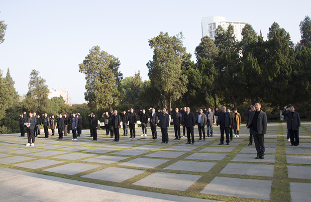 在庄严肃穆的烈士陵园,全体党员干部整齐列队,面向革命烈士纪念碑,肃立默哀,并向革命烈士敬献鲜花,院党委书记金平整理缎带。党办副主任张世龙领誓入党誓词,誓言铿锵忠诚,表达着对党坚定的信念和无限的忠诚。