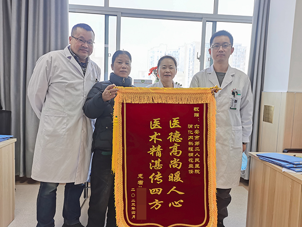 在治疗过程中,医护人员们不仅严密观察病情变化,还为其详细讲解了疾病的相关知识,缓解了病人焦虑的情绪。“有时去治愈,常常去帮助,总是去安慰”,程桐花主任高尚的医德、精湛的医术,得到了冯女士和家人的衷心认可,她表示,从办理住院到康复出院,医护人员对待她就像亲人一样,医生精心地治疗,护士贴心地服务,都让她感到十分的温暖。