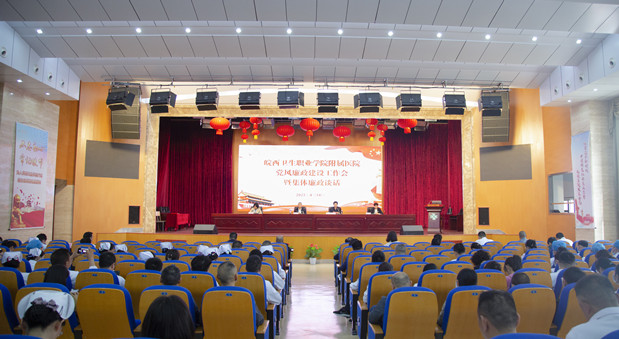 2023年4月14日下午,皖西卫生职业学院附属医院(六安市第二人民医院)在行政楼四楼多功能会议厅召开2023年党风廉政建设工作会暨集体廉政谈话。学院副院长、附院党委书记金平,党委副书记、院长赵本泉等院领导班子成员,中层干部及全体党员参会。会议由赵本泉院长主持。