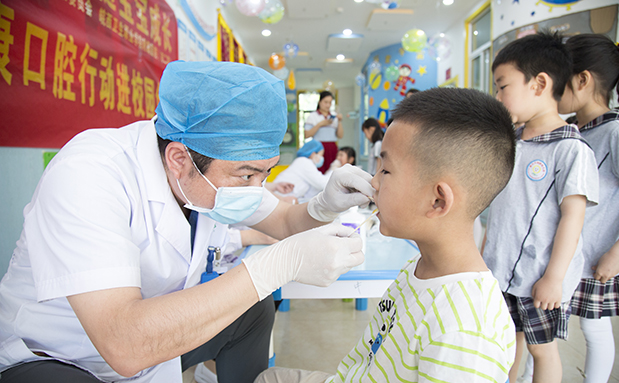 活动现场,医生们认真检查并记录幼儿们的牙齿及口腔卫生状况,并细致地帮其进行牙齿局部涂氟,边操作边耐心对孩子进行情绪上的安抚,及时消除儿童紧张心理。整个涂氟过程井然有序,进展顺利。现场共为450余名儿童进行了免费涂氟防龋治疗。
