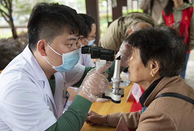 为更全面地满足社区居民就医需求,医院精心选派内科、眼科、耳鼻喉科、口腔科、康复科专家组成医疗团队,为社区居民测量血压、血糖,开展口腔、视力检查等,医务人员通过现场讲解、发放健康宣教折页等方式向前来问诊的群众普及医疗健康知识,并免费发放药品100余件。即使下着小雨,前来咨询、问诊的居民仍络绎不绝,义诊活动受到了社区居民的一致好评。