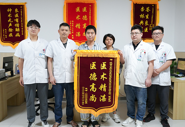 “这次多亏医护人员及时抢救,我才能重获生命,真是太感谢你们了……”6月25日上午,曾在“鬼门关”前走一遭的伤者张先生在妻子的陪同下,满怀感激地将写有“医德高尚、医术精湛”的锦旗送到我院急诊外科主任余海峰、医生陈浩及急诊医学科医护人员手中,感谢医生们的及时抢救,让他脱离生命危险,恢复健康。