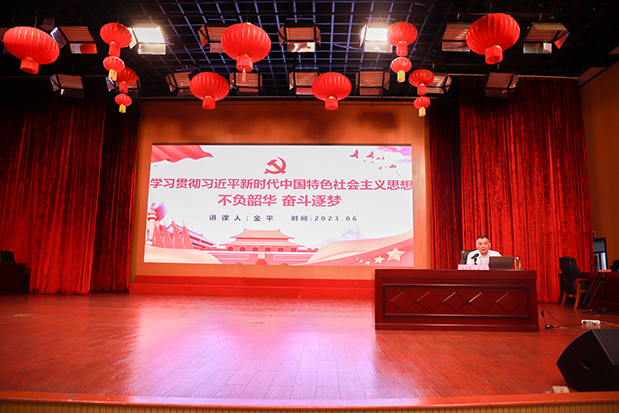 金平书记以《不负韶华,奋斗逐梦——学习贯彻习近平新时代中国特色社会主义思想主题教育》为题讲授了一堂立意深远、内涵丰富的专题党课。他深刻阐述了开展学习贯彻习近平新时代中国特色社会主义思想主题教育的时代背景、重要意义、总要求和根本任务,以及习近平新时代中国特色社会主义思想的主要内容和鲜明特质。同时他还结合实际,对如何把个人发展融入医院发展大局,做方向明、业务强、医德好的医务工作者提出了具体要求。