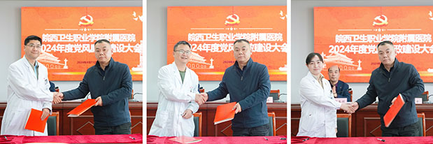 会上,附院党委书记金平代表附院党委与重点科室负责人代表签订《党风廉政建设工作目标责任书》,曾凡瑜、何进舟两位中层代表在会上进行表态发言。