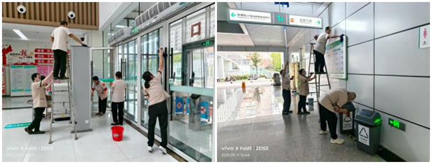 门诊区域作为患者就医的重要场所,其环境卫生直接关系到患者与医护人员的健康。为创造良好舒适的就医和工作环境,物业公司重点推进门诊区域环境卫生清洗打扫与消毒消杀工作,全力防范各区域霉变与细菌滋生。