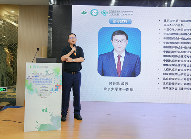 吴世凯教授回顾了与我院的历史合作,他指出,此次学习班旨在与基层专家探讨肿瘤治疗规范及最新进展,助力提升专业水平、加深友谊;并祝愿本次学习班圆满成功,期望与各位同仁共护皖西百姓健康。
