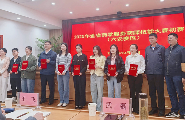 10月13日下午,由安徽省科学技术厅、安徽省药品监督管理局指导,安徽省药品不良反应监测中心、安徽省药师协会、安徽省医药产业创新协会共同主办的“2025年安徽省药学服务技能大赛(六安赛区)”成功举办。来自药品生产、经营企业和医疗卫生机构的十余名一线药师同台竞技,激烈角逐。我院药师田秋云凭借主题鲜明、内容严谨、表达生动的精彩演讲,从众多选手中脱颖而出,荣获总分第二名。