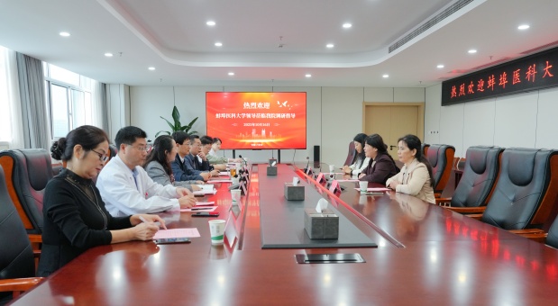 10月16日上午,蚌埠医科大学护理学院院长朱宁宁、硕士生导师杨秀木教授、副教授孙婷一行来我院调研交流,并在三号楼16楼第二会议室举行座谈会,院党委副书记、院长赵本泉等院领导班子及相关职能部门负责人参会,会议由党委委员、副院长涂有运主持。