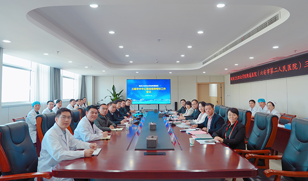 为深入推进“百万减残工程”,进一步规范脑卒中防治工作,提升心脑血管疾病诊疗水平,10月22日下午,由中国科学技术大学附属第一医院王锦权教授带队的三级卒中中心现场指导专家组一行6人莅临皖西卫生职业学院附属医院(六安市第二人民医院),对三级卒中中心建设工作开展全方位调研指导。我院党委副书记、院长赵本泉等院领导班子成员以及相关科室负责人全程陪检。