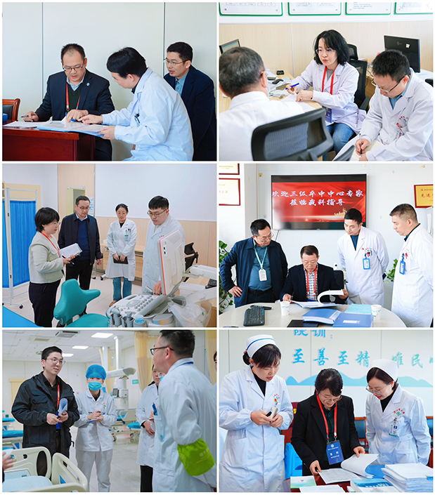 专家组分成五组,实地走访了急诊科、神经内科、神经外科、医学影像中心、医学检验科、康复科、心血管内科等卒中相关科室,通过审阅管理制度与台账资料、走访绿色通道、查看应急处置流程、访谈相关人员、查阅病历、调取数据等方式,对我院脑卒中防治体系建设进行了全面、详细的现场指导。