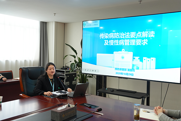 预防保健部副主任护师潘国筠专项解读新修订的《中华人民共和国传染病防治法》,涵盖修订背景、核心条款变化及医疗机构法定职责;同时结合院内实际,演示慢性病筛查、随访管理及信息上报规范操作,强化联络员依法履职意识与业务能力。