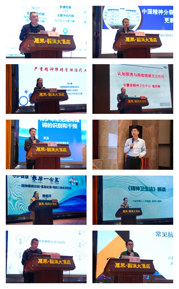 此次培训聚焦临床实践与政策导向,内容干货满满、学术氛围浓厚。金平书记以“脑血管疾病的规范化治疗”为题,结合实际案例系统阐述诊疗思路;安徽省精神卫生中心副院长郜见亮、项目办主任徐小童、张许来教授分别围绕《中国精神分裂症防治指南(2025版)》的更新要点、严重精神障碍管理相关标准与要求、老年抑郁与认知障碍的最新研究进展与临床干预经验作了权威剖析。安徽医科大学附属巢湖医院夏磊博士就青少年精神障碍的早期识别与干预进行专业解析。六安市精神卫生中心七病区主任王昆、八病区主任王安江、精神科护士长熊祖平、四病区副主任江洋则分别讲解了《中华人民共和国精神卫生法》在实际工作中的应用要点、失眠的中西医结合治疗策略、精神障碍患者的护理技巧与沟通策略、抗精神病药物的规范使用与用药安全。