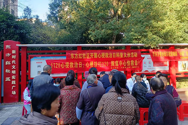 11月20日是“中国1120心梗救治日”,承载着“有胸痛,拨打120”和“黄金120分钟”的生命意义。当日上午,我院胸痛中心医护团队,来到东方红社区凯旋名门广场开展心梗防治义诊及宣教活动。