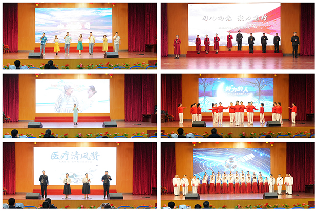 颁奖环节后,文艺节目精彩纷呈。独唱《为你》,歌声温柔真挚,既饱含着医护人员对患者的深情关怀,也诠释了 “以患者为中心”的服务理念;手语歌舞《努力的人》用灵动的舞姿与手语传递奋进力量,赞美了每一位在岗位上默默耕耘的皖卫附院人,彰显了敬业奉献的精神底色;快板《医疗清风赞》则以明快节奏、鲜活语言点赞医疗行业清风正气,紧扣八项规定要求,弘扬廉洁从业、崇廉尚洁的职业风尚,传递出风清气正的行业正能量,充分展现了医院职工的多才多艺与积极向上的精神风貌。